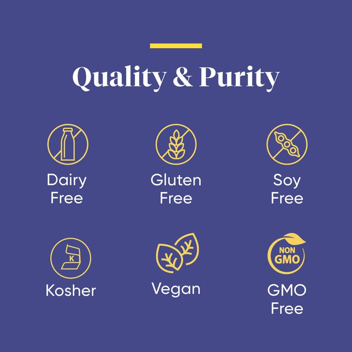 • PURITY PROMISE: Contains no gluten, milk, casein, soy, egg, artificial colors, flavors, or GMOs. Vegan and Kosher