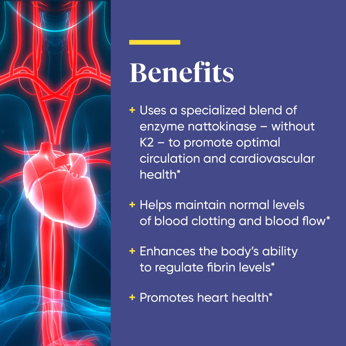 • CARDIOVASCULAR SUPPORT: Specialized blend of the enzyme Nattokinase + five complimentary enzymes to promote optimal circulation and cardiovascular health
