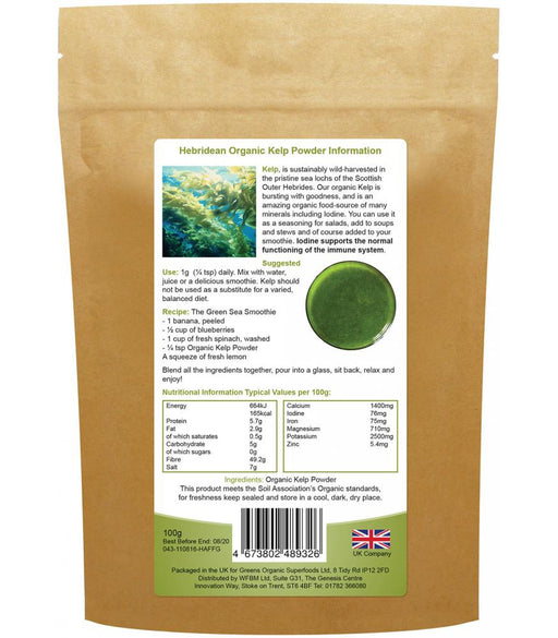Ver todos los detallesOrganic source of iodine Bursting with fibre and minerals Suitable for Vegetarians, Vegans Non-GMO and 100% natural Certified Organic by the Soil ...
