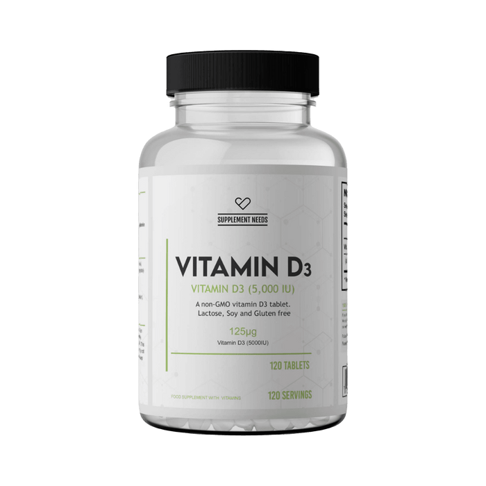 Size: 120 tabs Serving Size: 1 tab Servings: 120 1 TABLET SERVING INGREDIENTS MG VITAMIN D (AS D3 5000IU)(CHOLECALCIFEROL) 0.125 DI CALCIUM PHOSPHATE MAGNESIUM STEARATE MICRO-CRYSTALLINE CELLULOSE