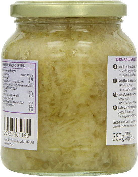 Biona Sauerkraut is made using finely shredded organic cabbage that has been fermented by lactic acid bacteria - which gives it a distinctive sour flavour. Fermented foods are a great source of probiotics so this is not only delicious but great for your gut too! -