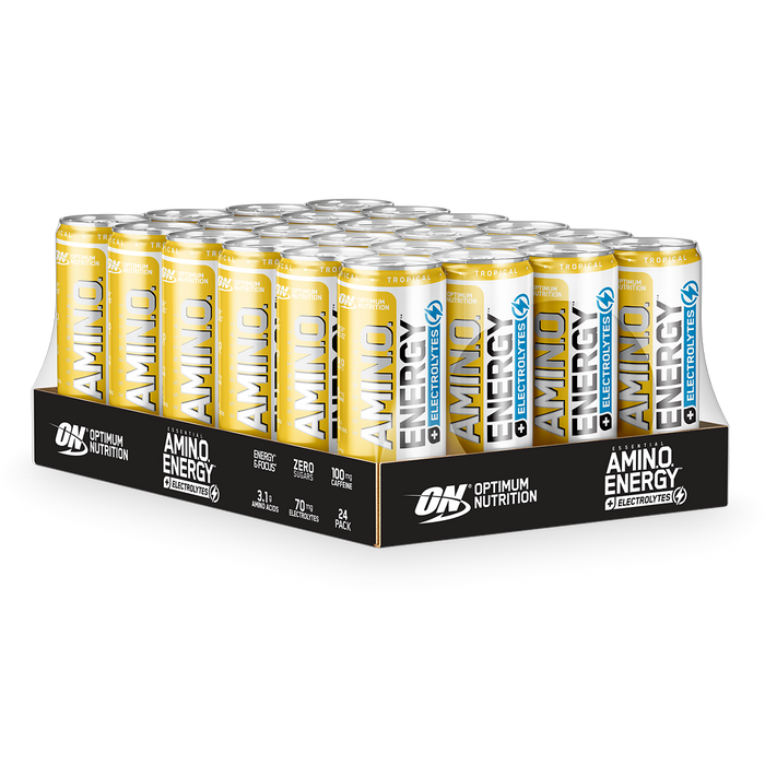 • Living a busy and full life can leave you needing a trusted partner to help you meet the everyday demands of life, work and training. The World?s No.1 Sports Nutrition brand Optimum Nutrition now brings you ESSENTIAL AMIN.O. ENERGY?p + Electrolytes in a convenient ready-to-drink format to give you a refreshing boost to support your on the go active lifestyle. With zero sugars, low calories, 3.1 g of Amino Acids and 100 mg of Caffeine from natural sources, it?s a better for you solution to support your energyp, anytime.