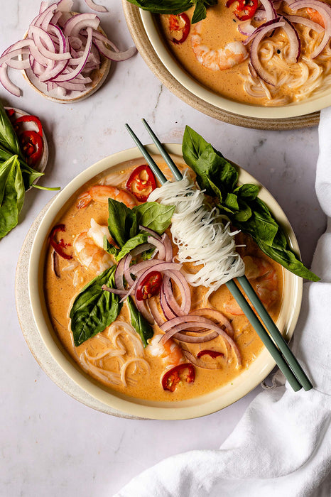 • eaten all over thailand and is known as the milder one out of red and green, it includes red pepper, lemon grass, ginger, coconut milk, and red curry paste along with fish sauce or soy sauce and coriander. It gets its red flavour from the red chillies.
