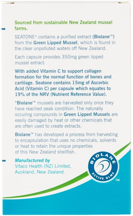 • Seatone: Containing unique Biolane active extract of Green Lipped Mussels, and Vitamin C